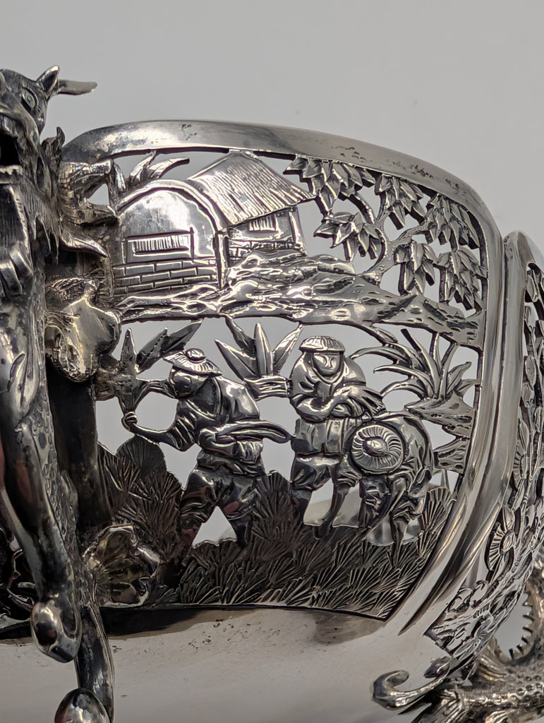 Chinese Export Silver Pierced Dragon Bowl. WC Maker Mark. Circa 1890