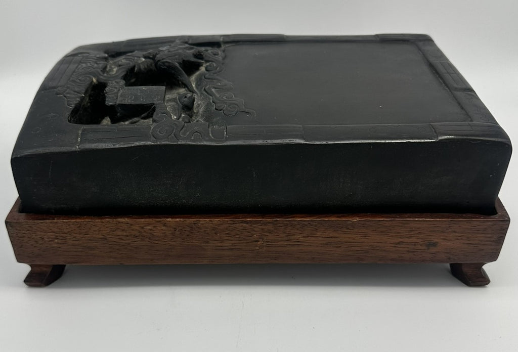 Large Chinese Inkstone on Stand. Mid 19th Century. Includes Scroll Weight