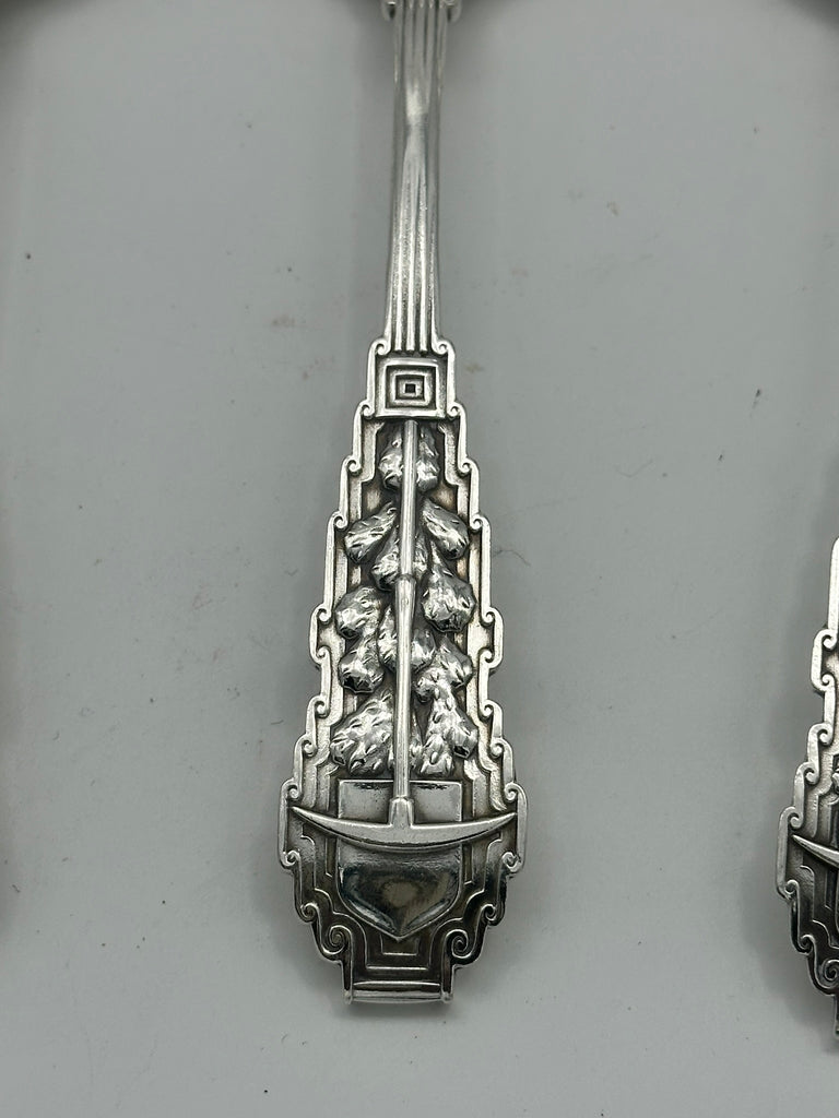 RARE set of eight Gorham sterling silver souvenir spoons from the Saint Juliana Mines in Mexico.