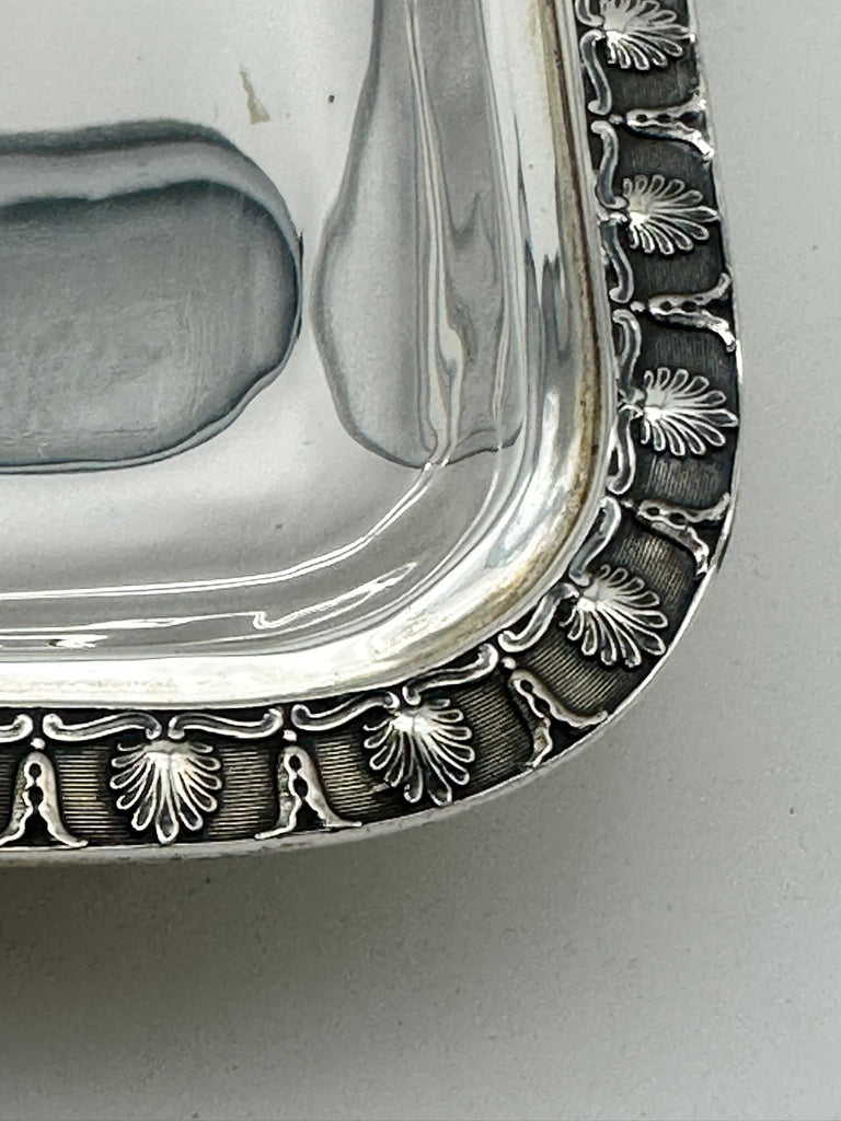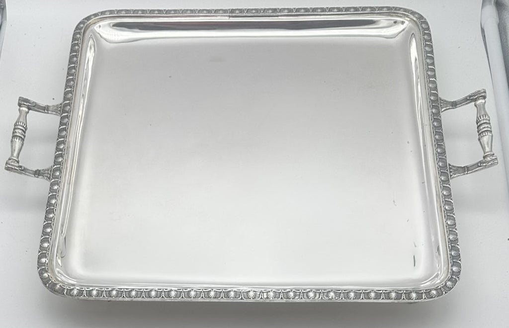 Square Handled Tray. Italian 800 Silver. Shell Motif. 20th Century. 16 3/4"