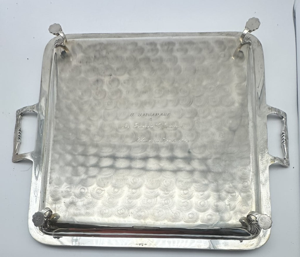 Square tray with handles. Italian 800 silver by Broggi Milano.
