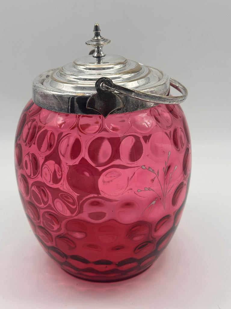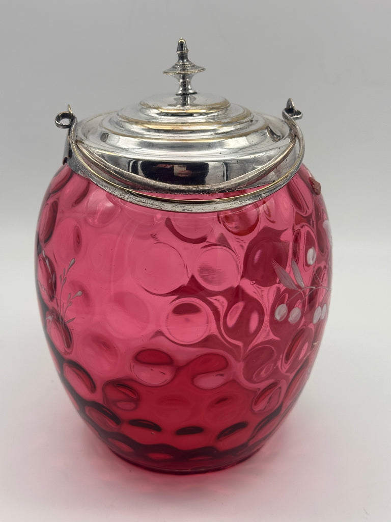 Remember Me Mug. Cobalt Blue Glass with Enamel Flowers and Leaves.
