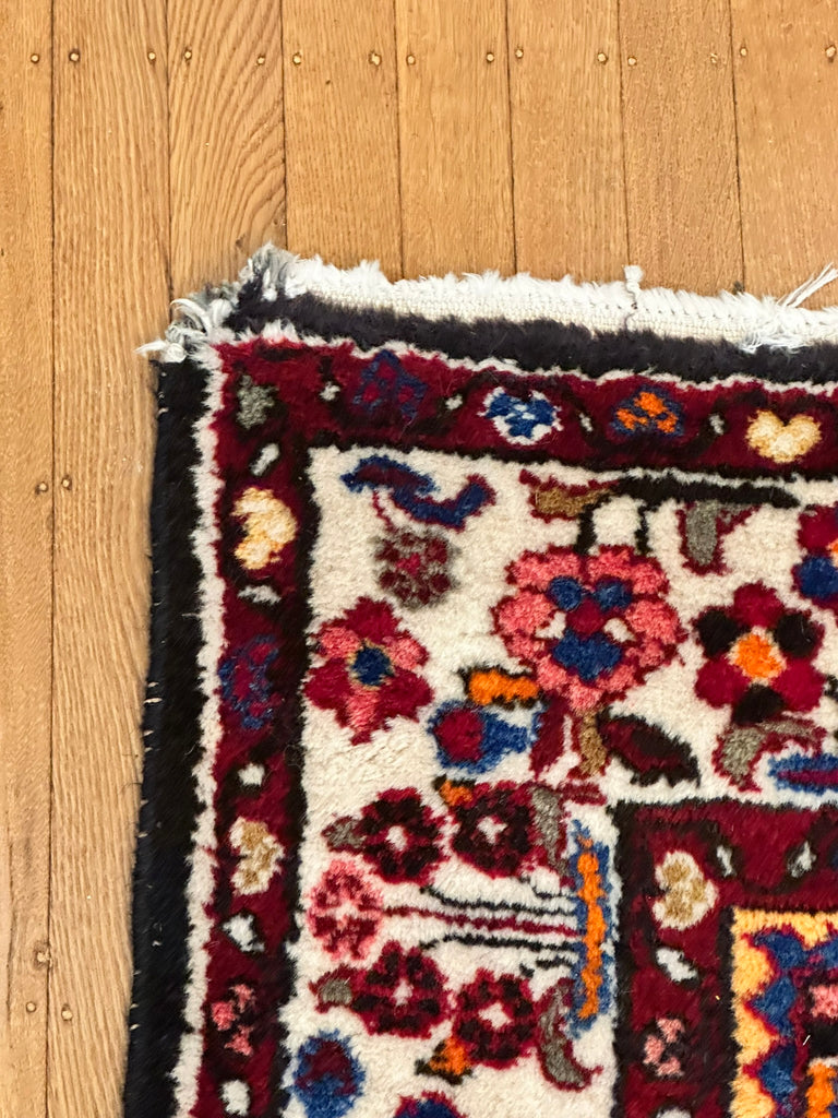 Afghan rug. Red ground with cream border. Circa 1920s.