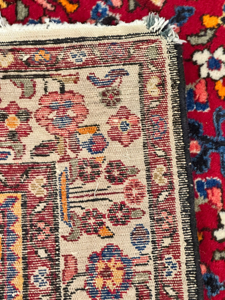 Afghan Rug. Red Ground with Cream Border. Circa 1920. 7' 8" x 4' 7". (CABE)