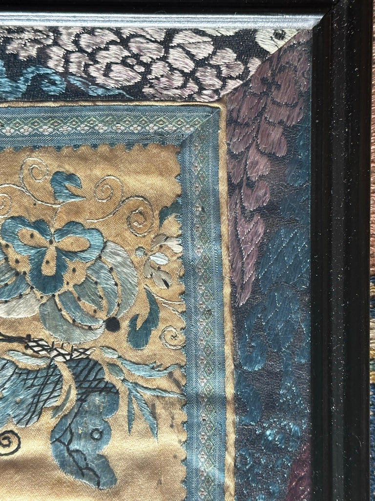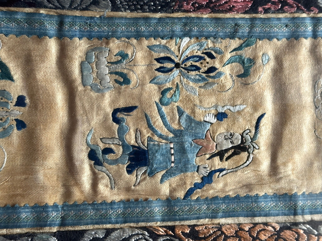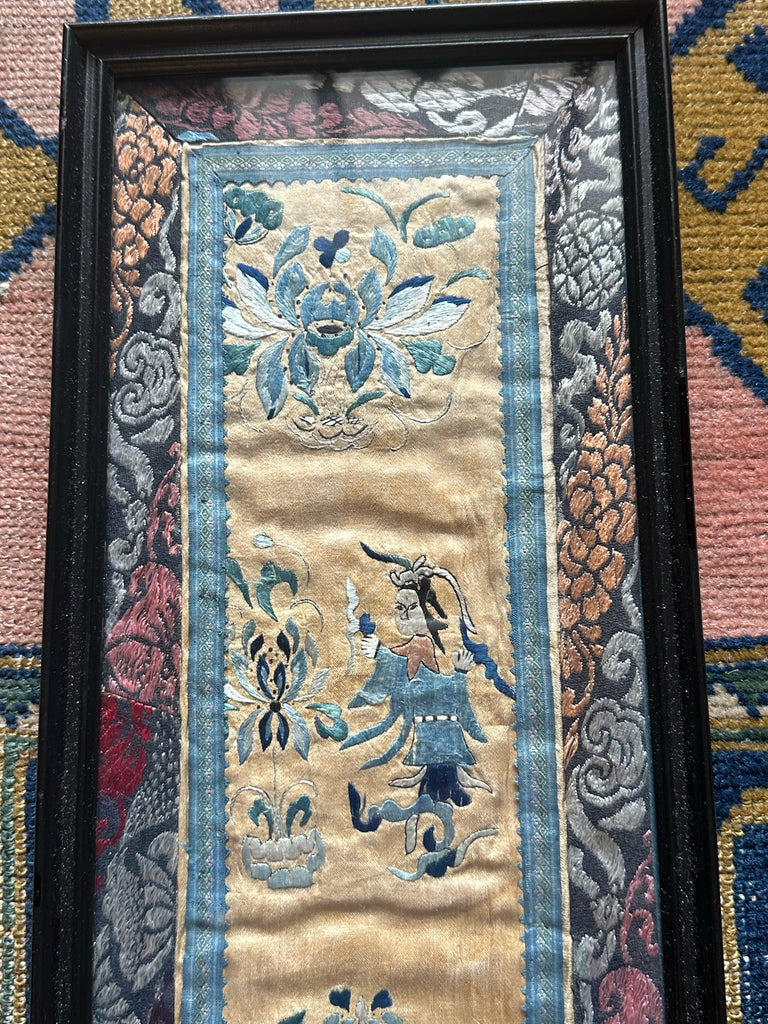 Chinese Embroidery. Framed with Border. Qing. 21 1/2" x 7"
