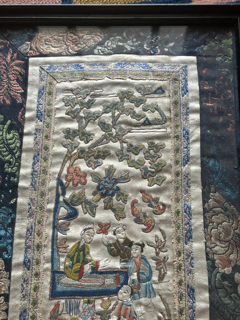 Chinese Embroidery. Peking Forbidden Stitch. Framed with Borders. Qing.