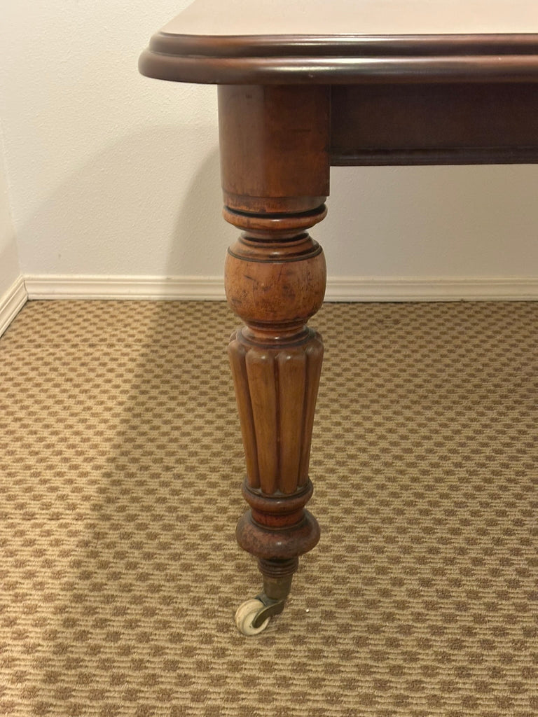 Mid 19th century English dining table and eight chairs. Walnut wood. Caster wheels.
