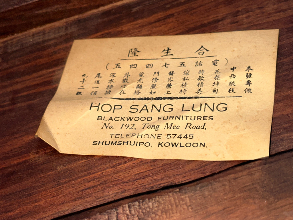 Label on bottom from Hop Sang Lung, Blackwood Furniture.