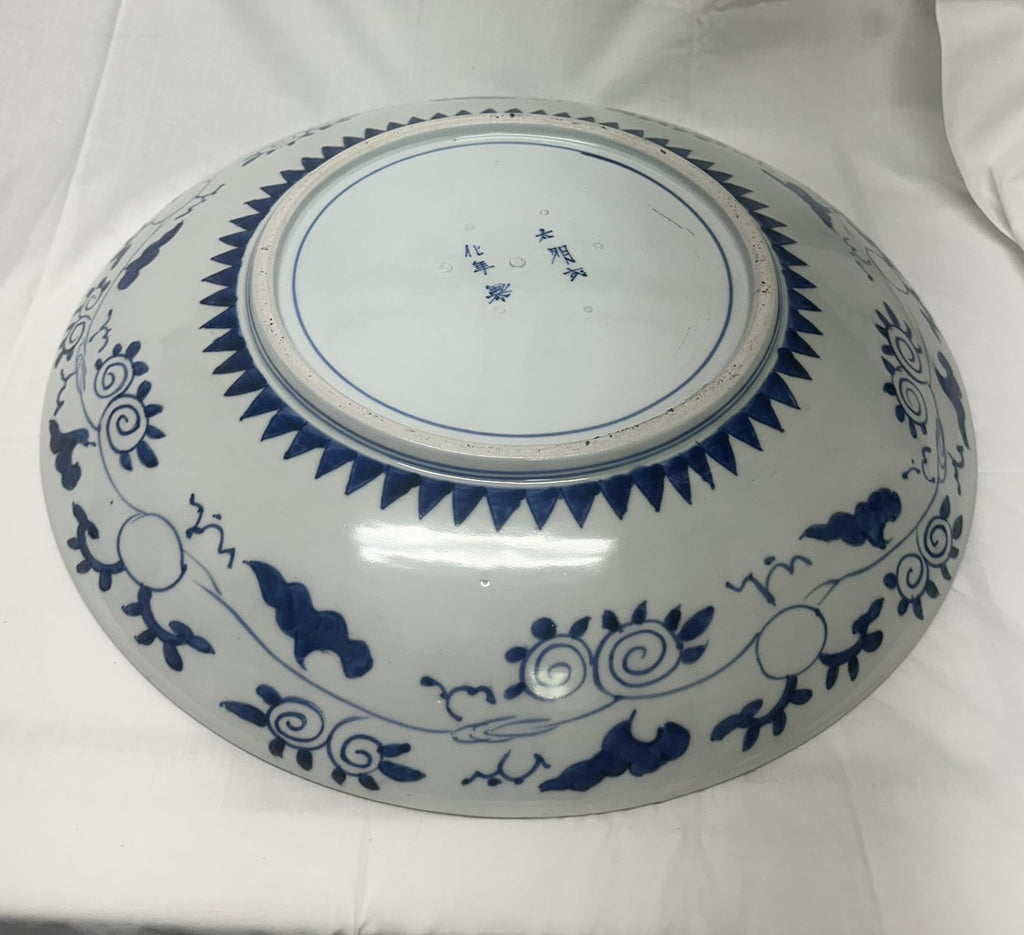 Large Charger. Japanese Blue and White Imari. Circa 1900. 18 3/4" Diameter