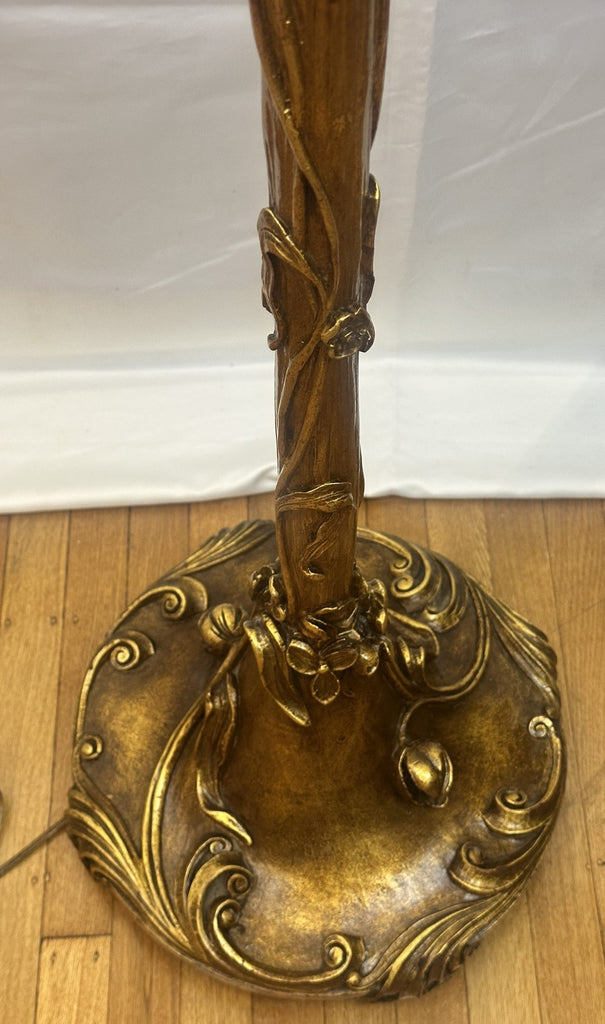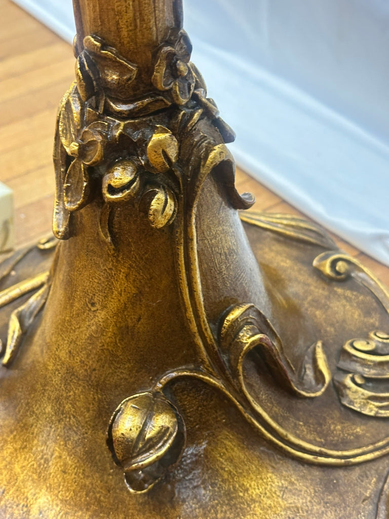 Art Deco Desk Lamp. Bronze-Colored Metal with Art Glass Shade. Figure of Woman.