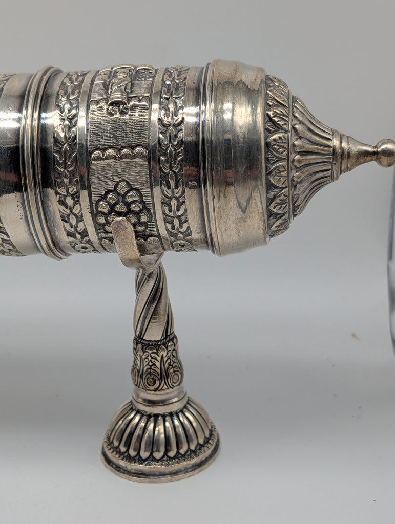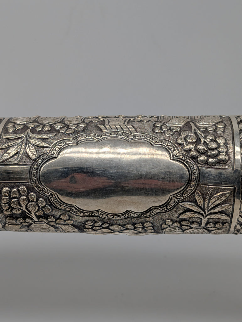 Cylinder Document Box Large Scroll Holder on Stands. India 925 Silver. 17 1/2"