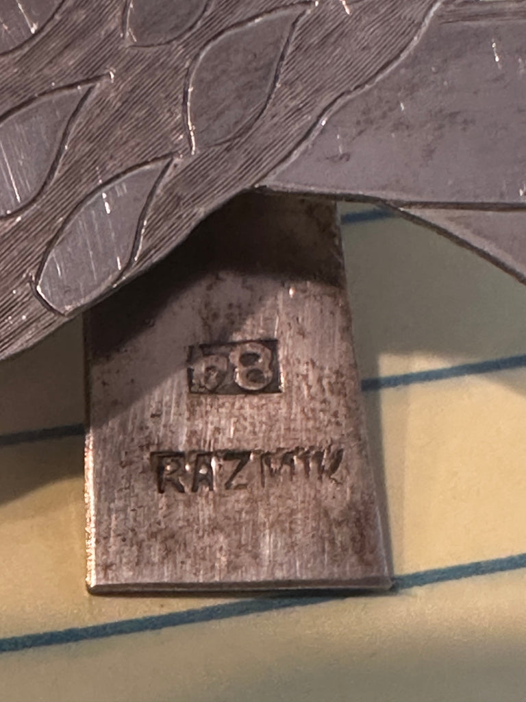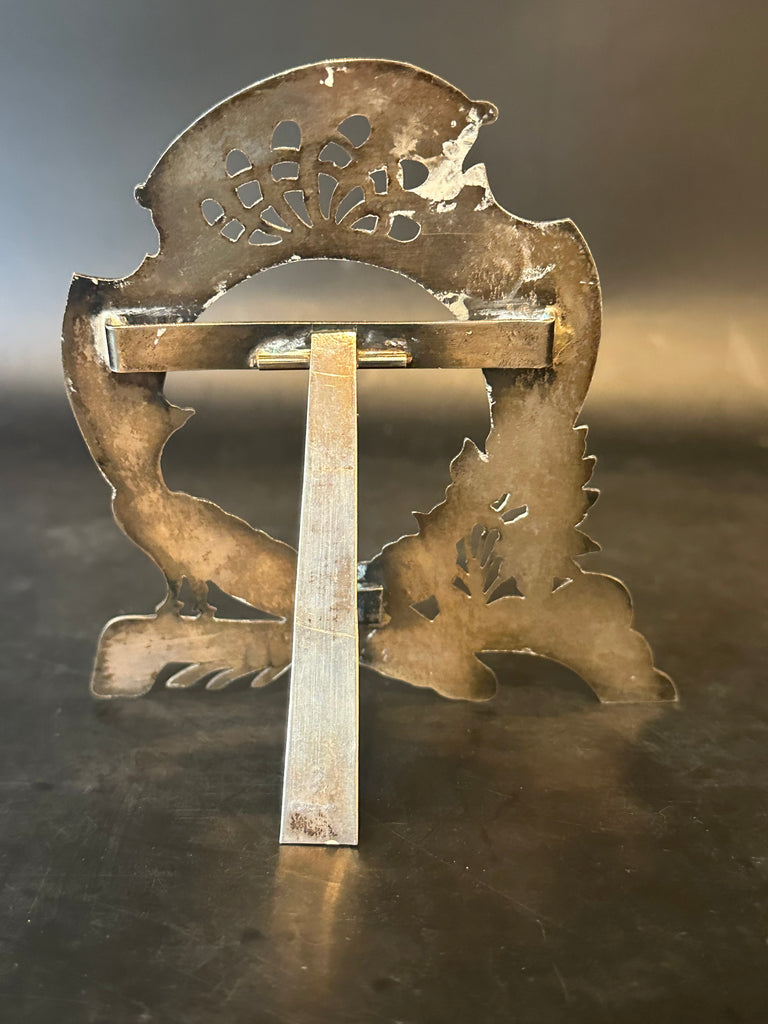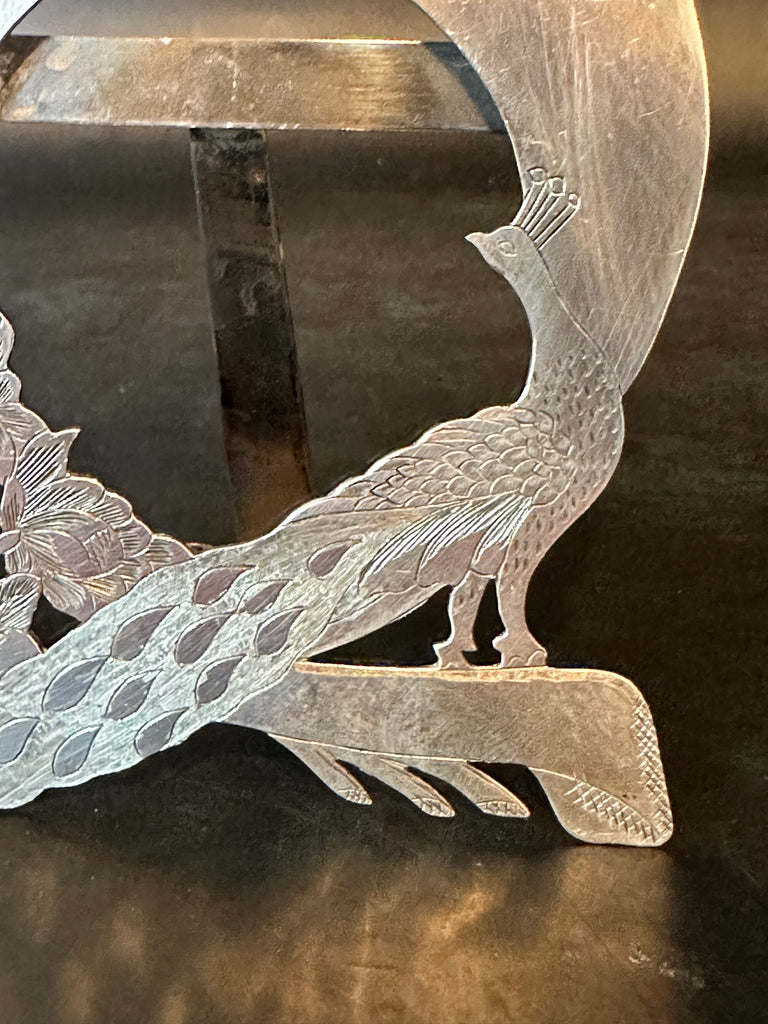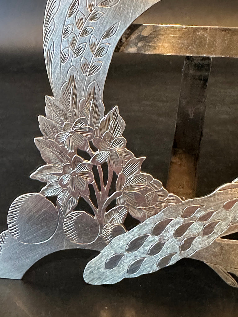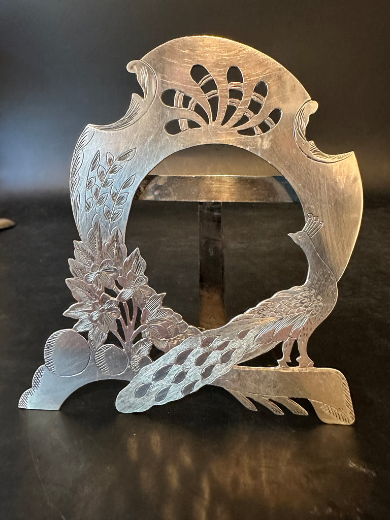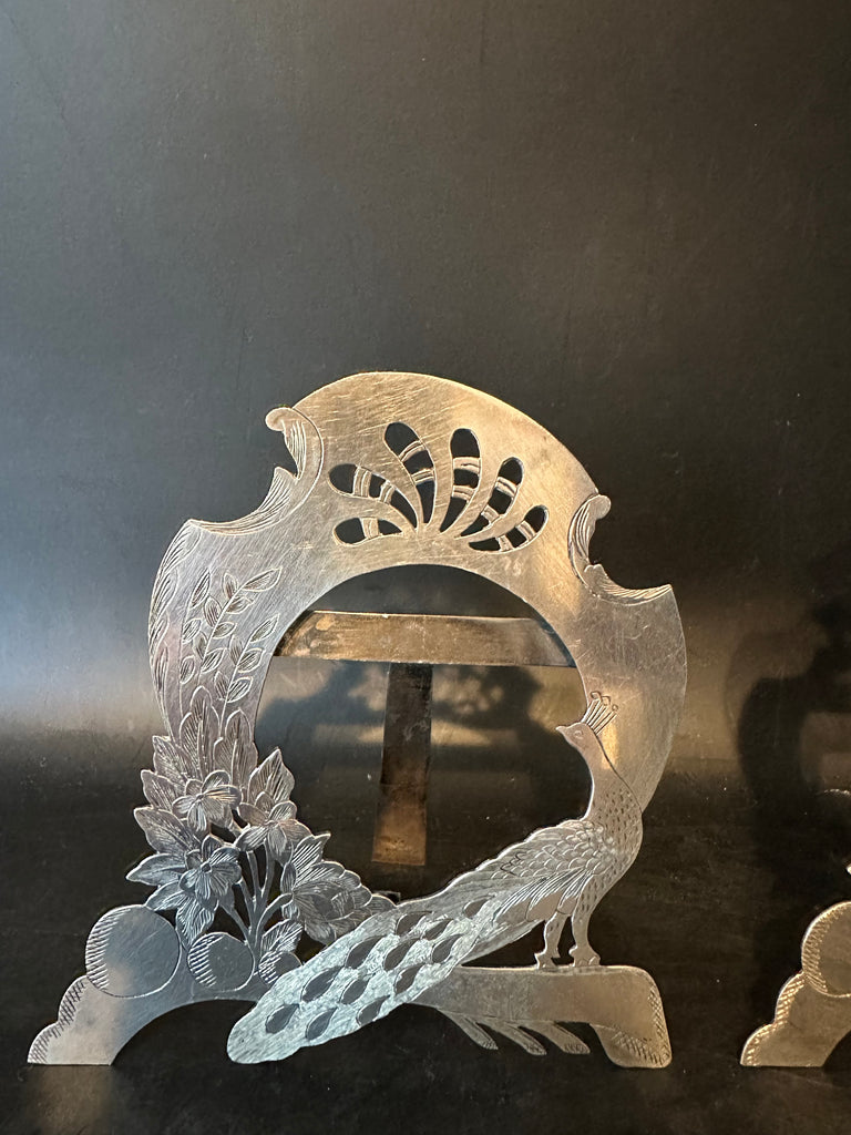 Pair of Silver Picture Frames. Peacock and Flowers. Photo Opening 2 1/8" x 2"