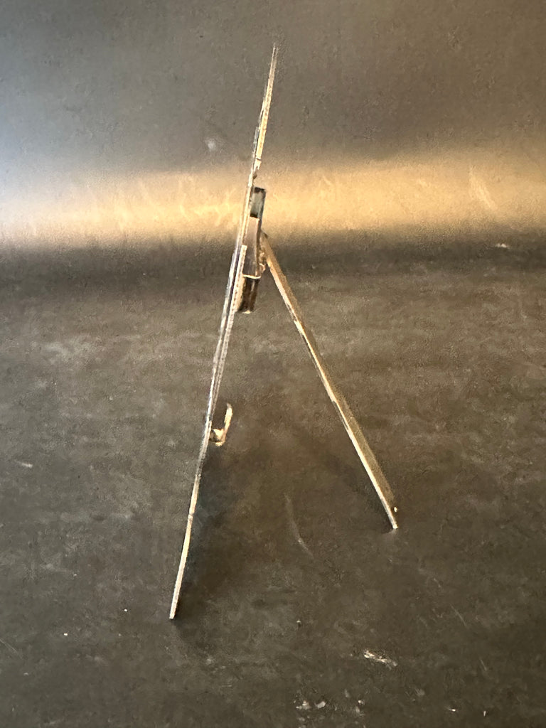 Pair of silver picture frames. Engraved peacock and flower motif. Easel stand.